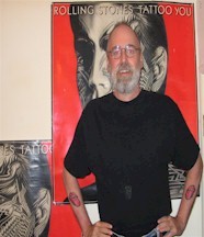 Real Name: Rick, His homebase is Cleveland, OH, USA. He's been married to Vicky for 22 year and they got two kids, Chris and Scott. His first Stones show was in 1989, in Cleveland. His Religion: Exile On Main St.Gasser since:1956. Turnons: Baseball bats wrapped in barbed wire, Pony Rides Turnoffs: Puppies, kittens, Rednecks, Classic Rock in general, Led Zeppelin and the Eagles in particular. Hobbies: The Rolling Stones!...and NEW stuff to listen to! Mr Man is shown here sitting next to Mr Riffhard while in his lap sits the true love of his life.