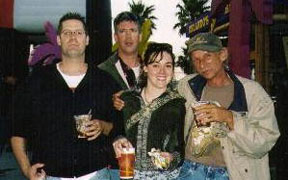 Held the day before the Stone's Denver show, February 2, 1999. The first real cyber-Stones party I can recall. Back row (Left to right):Dude one*, Kalistongue (known then as Ladybear), Keno, Jaxx, Marylyn. Front Row: Dude two*, Scott, Jaxx's friend, Dan the tapper. *Sorry, but I can't recall the two dude's names, other than one was named Scott (as we had two Scott's there that nite). I do remember that they were in Denver for the show and they worked for the Stones. I also can't recall Jaxx's friend's name, either.