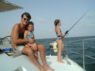 Real Name: Zack He's married with two daughters and a son. Originally from Easton, MD, USA, he now lives on the island of Sri Lanka and is a journalist. His wife works for the UN and they have also lived in Cambodia, Burkina Faso and Mali. He saw his first Stones show in 1981, but has missed every tour from Bridges forward on account of being in the wrong hemisphere. He has been a Gasser since 2001.Shown in this photo suffering the hardships of African life fishing off the coast of Senegal with his daughters in 2003.